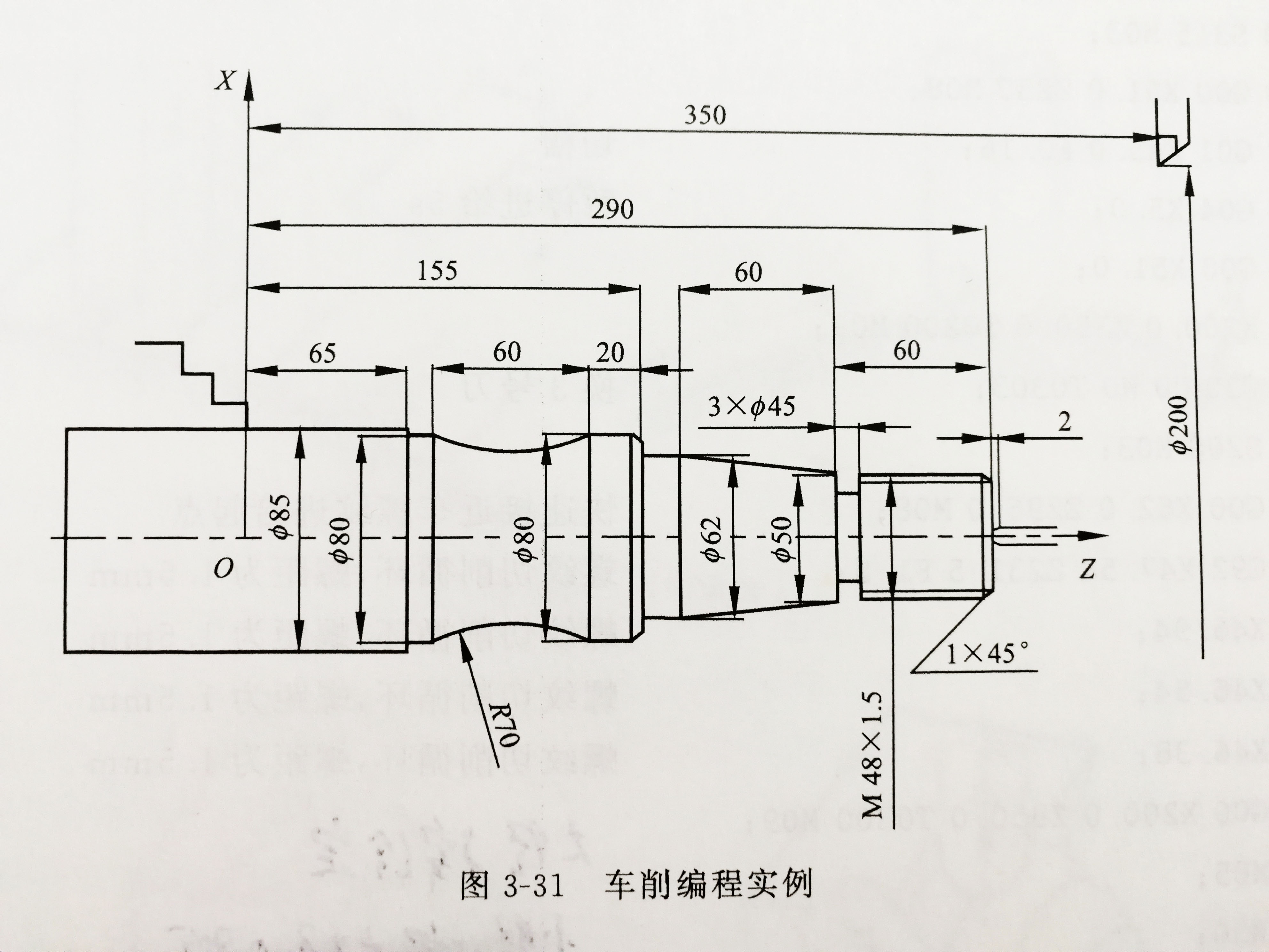 如图所示工件,需要进行精加工,其中Φ85mm外圆不加工,毛胚为Φ85mmX340mm棒材,材料为45钢: