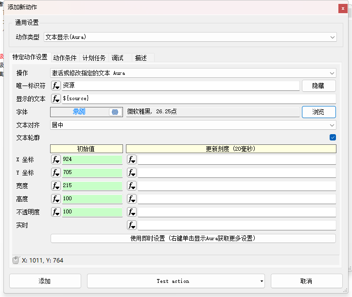 下面新建动作,类型还是文本显示(Aura),但是这回我们的操作变为了停用指定的文本Aura: